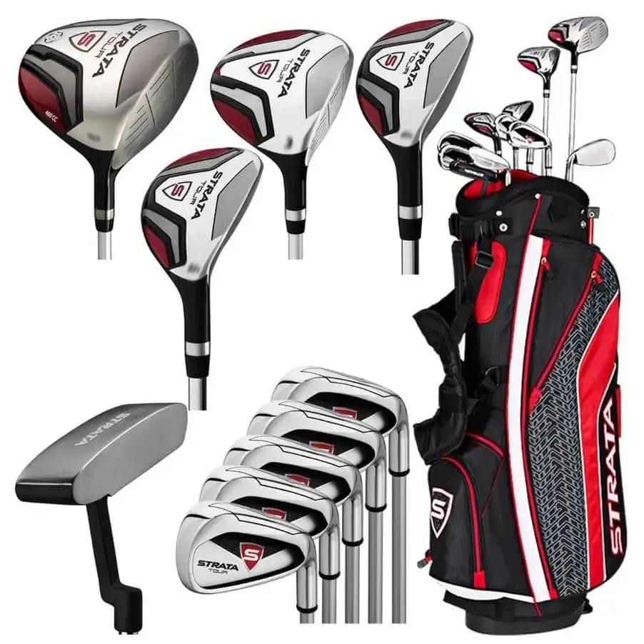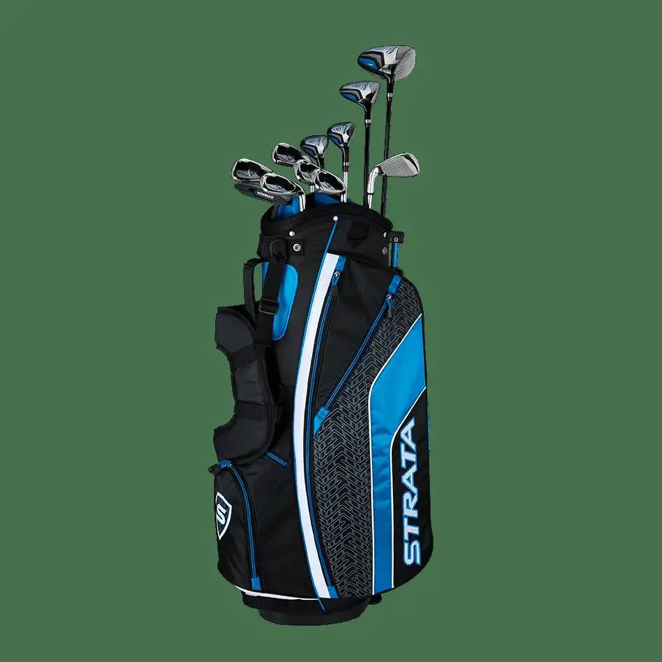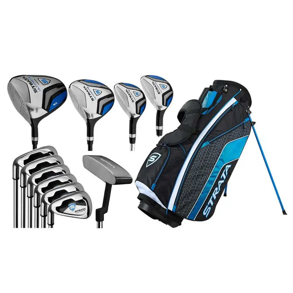- Strata Ultimate is designed for ultimate distance and ultimate performance. This set includes: Driver 3 wood 4 & 5 Hybrid 6 to 9 Iron PW & SW Putter Stand Bag 4 Head covers