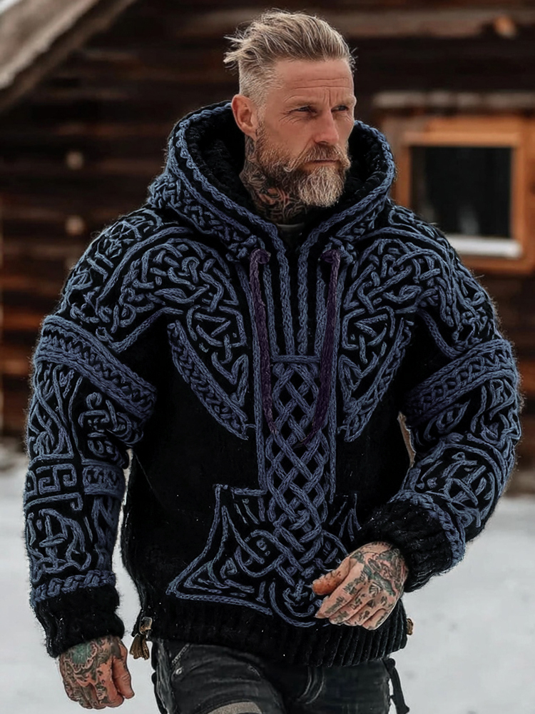 Men's Viking Celtic Pattern Art Cozy Hooded Sweater