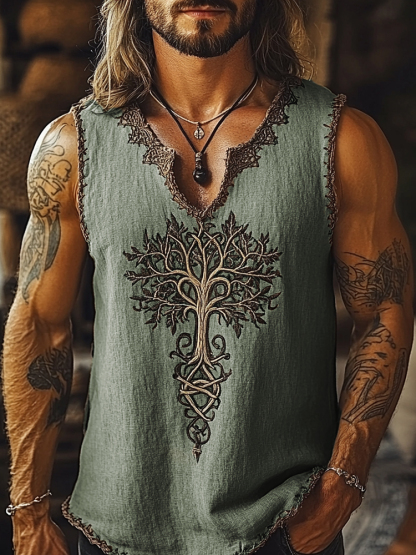 Men's Viking Tribal Celtic Tree Of Life Art V Neck Tank Top