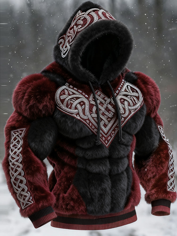 Men's Vintage Viking Tribal Jacquard Celtic Muscle Line Inspired Art Plush Warm Hoodie